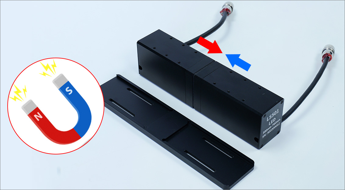 There is a magnetic attraction between the light source probe and the receiving probe, making alignment convenient.
