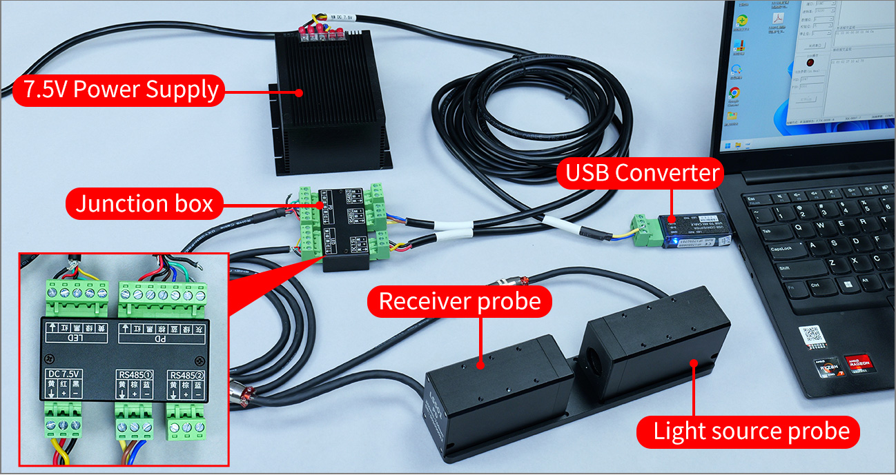 The LS501 Transmittance Digital Probe is an intelligent sensor designed to measure the transmittance or optical density of transparent materials. It is suitable for real-time monitoring in various industrial scenarios. Equipped with dual RS485 interfaces and MODBUS protocol, it seamlessly integrates with PLCs, and PCs for real-time data acquisition. Applications include online production monitoring, quality inspection for glass, window films, and liquid transmittance analysis.