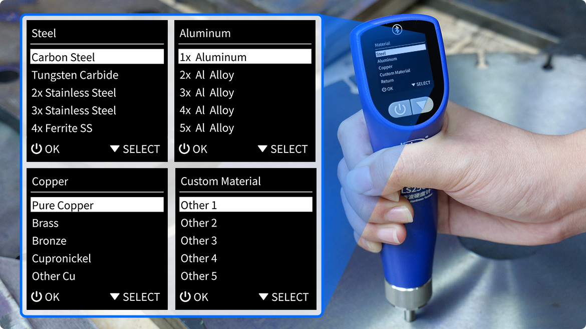 The instrument offers a selection of built-in metal materials to meet diverse measurement needs.