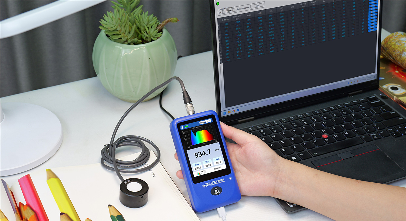 Measure Lux, spectrum, CCT, CRI, SDCM, flicker, blue light hazard, UV index, temperature, and humidity—offering a full assessment of light sources for diverse applications.
